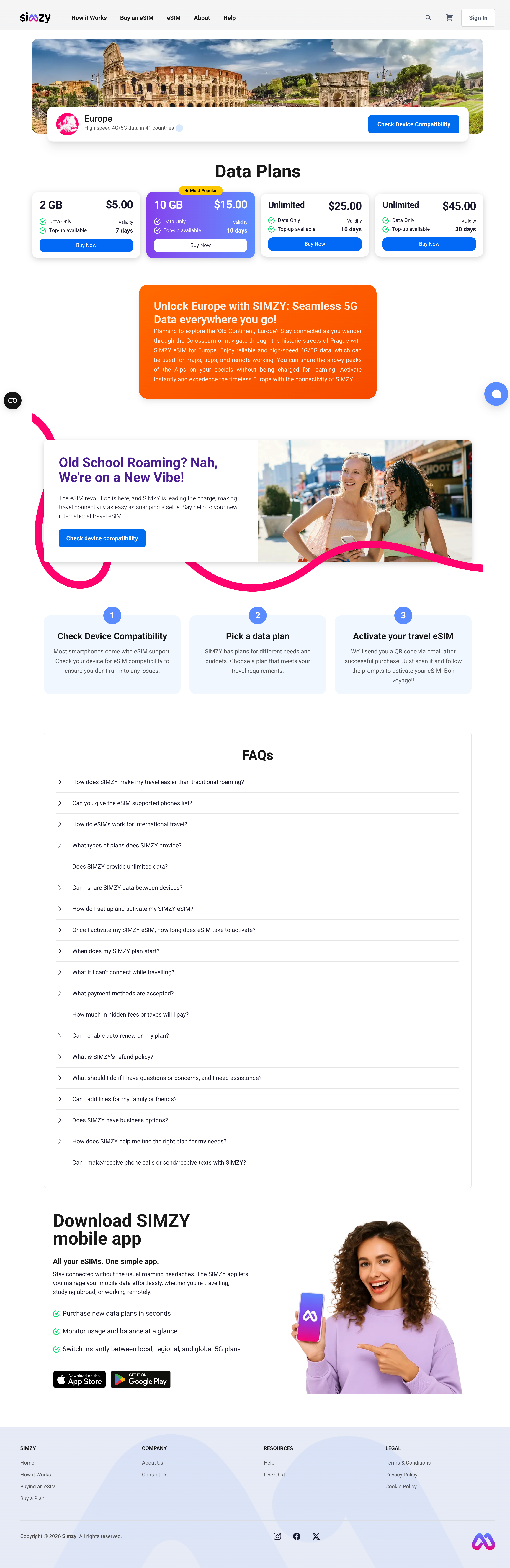 Simzy is a service that helps people stay connected internationally by offering eSIM mobile data plans that work without a physical SIM card. It makes it easy for travelers, remote workers, and global users to get data in many countries instantly, with simple activation and flexible plans that you manage from your phone.